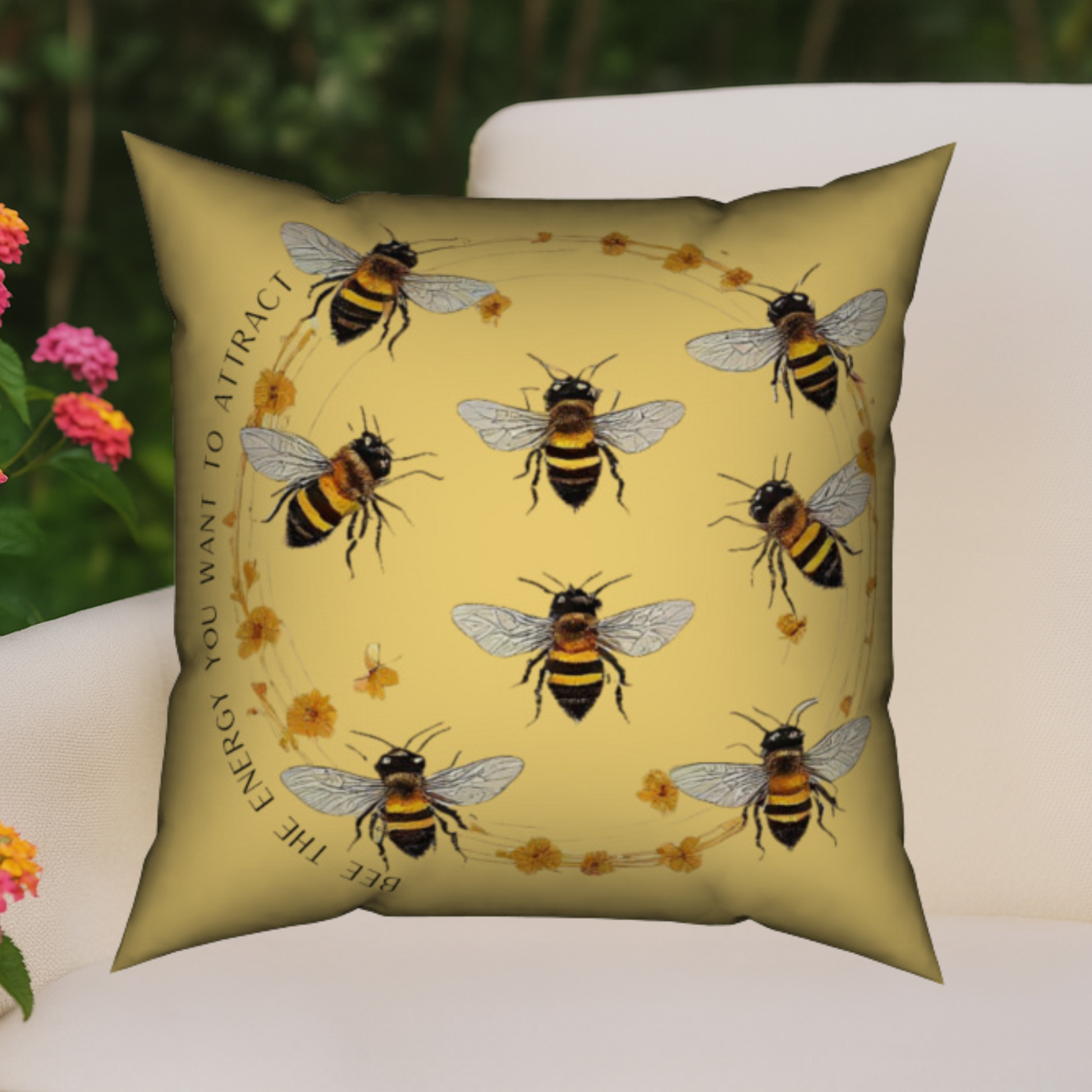 “Bee the Energy You Want to Attract” – Square Cushion Cover